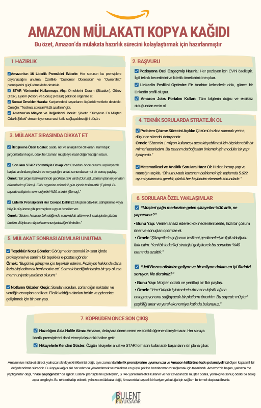 Amazon’da mülakat başarısına giden yol bu rehberle elinde! Amazon’un liderlik prensiplerinden STAR yöntemine, gerçek sorulardan etkili cevap stratejilerine kadar her detay burada. Bu rehber, mülakat sürecini adım adım öngörülebilir kılacak ve seni başarıya hazırlayacak. Amazon’un dinamik dünyasında yerini almak için ilk adımı at!