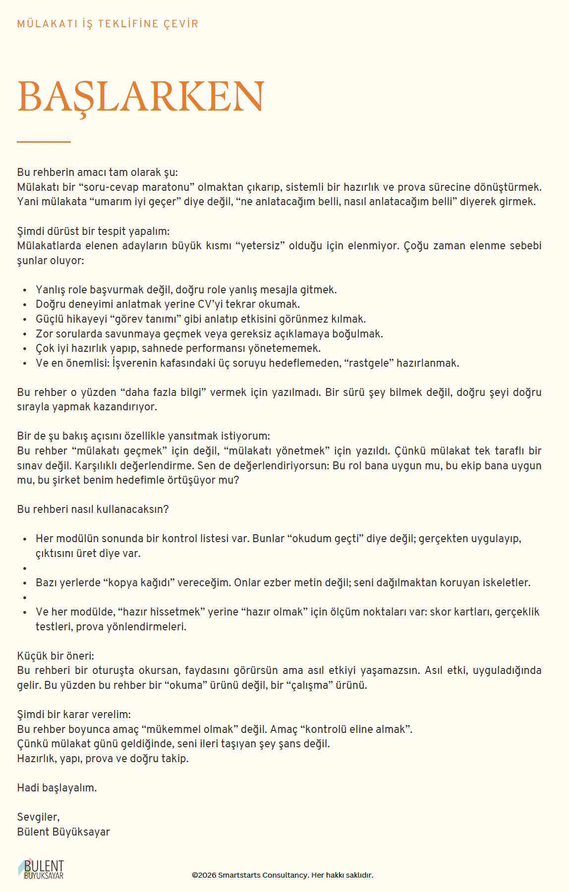 Ve en önemlisi: bir sonraki mülakata sadece "bu sefer farklı olacak" umudunu değil, bir sistemi götüreceksin.